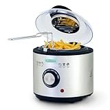 - 【Sicheres Kochen】 Hochwertiges Edelstahlgehäuse mit Sichtfenster im Deckel, das beim Kochen das Spritzen von Fett oder Öl verhindert. Abnehmbare Antihaft-Emaille Ölschale für einfache Reinigung. Edelstahl-Frittierkorb mit abnehmbarem, kühlen Touch-Griff für einfaches Halten.