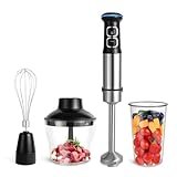 - ✅4-in-1 Set: Mixer, Schneebesen-Aufsatz, 500ml Zerkleinerer und 800ml Messbecher.