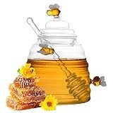 Honigspender – Kleine Honiggläser | Retro Keramik Honigglas Tischspender mit Holzrührstab für Zuhause