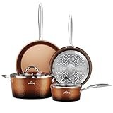- Induktionsherd mit flachem Boden Kupfer Topf: Der elektromagnetische Verbundboden ist universell, ohne den Herd aufzunehmen. Der Verbundboden hat eine große Heizfläche und eine schnelle Wärmeleitung.