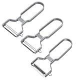 • Praktisches Set: Das Set besteht aus einem P - Schäler und drei Ersatzklingen. Die flachen Klingen sind ideal für das Schälen von hartem Obst und Gemüse wie Kartoffeln und Spargel. Das Wellenschliff - Messer hingegen ist perfekt für weiches Obst und Gemüse wie Kiwis und Tomaten. Das Julienne-Klinge sich hervorragend zum Zerkleinern von Möhren, Gurken und anderen Gemüsesorten. Diese Kombination deckt die meisten Bedürfnisse in der Küche ab.