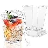 50 Stück Dessertgläser Plastik,60ml/2oz Quadratischer Dessertschalen mit Löffel und Deckel,Durchsichtig Dessertbecher Wiederverwendbare Kleine Dessertgläser für Pudding Mousse Eiscreme Dessert Party