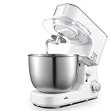 - Leistungsstark und effizient: Mit einem leistungsstarken Kupfermotor (1000W) und 8+1 Mischgeschwindigkeiten, die mit einem Knopf einstellbar sind, ist es einfach, schwierige Mischaufgaben zu bewältigen, vom Kneten von Teig bis zur Herstellung von feinem Baiser.