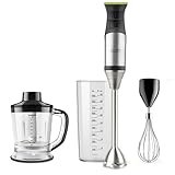 - ✅4-in-1 Set: Mixer, Schneebesen-Aufsatz, 500ml Zerkleinerer und 800ml Messbecher.