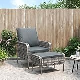 - Mit den Maßen 77 x 67 x 73 cm (Sessel) und 59 x 59 x 30 cm (Fußhocker) bietet dieses Set eine platzsparende Lösung für kleine Gärten, Terrassen oder Balkone. Perfekt für Paare oder Einzelpersonen, die stilvollen Komfort suchen.