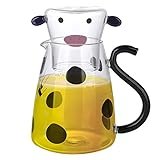 Wasserkaraffe Wasserkrug mit niedlichem Muster, Wasserkocher aus Glas, Teeservice mit 350-ml-Tasse*6, Kaltwasserflasche für heißes/kaltes Wasser für Kaffee/Saft Getränkespender